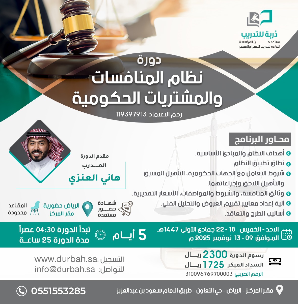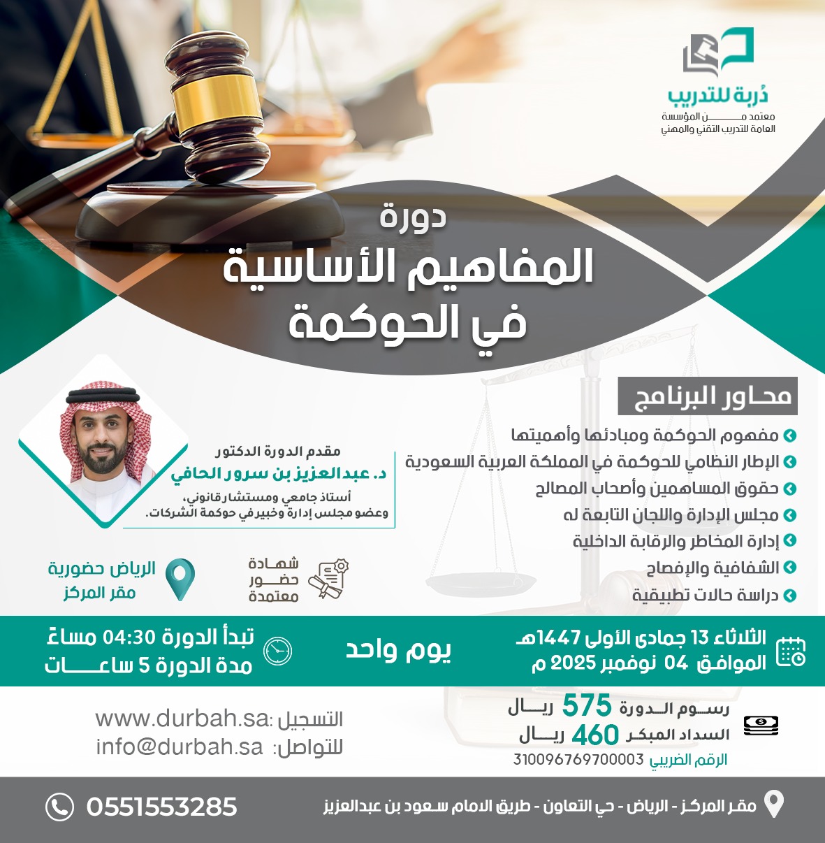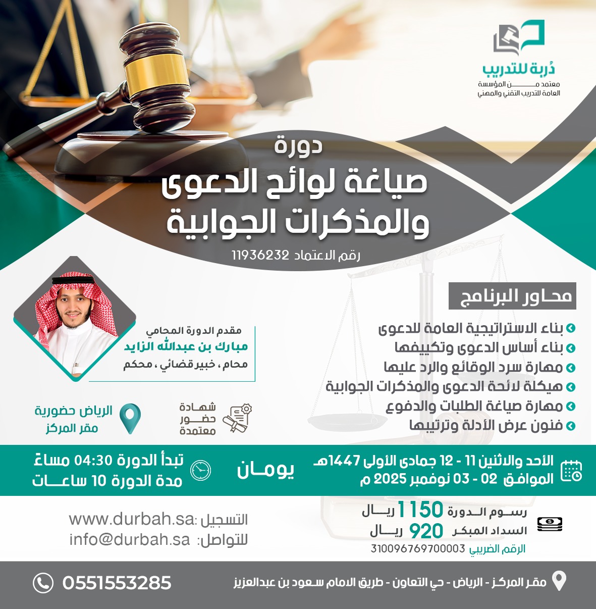 المزيدنقدم في مركز دربة للتدريب دورات متخصصة في شرح الأنظمة القضائية في المملكة العربية السعودية ، ويقدمها متخصصون وممارسون في تلك الأنظمة .